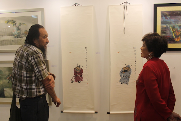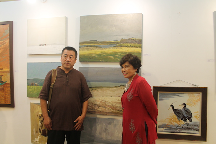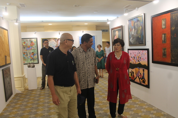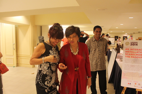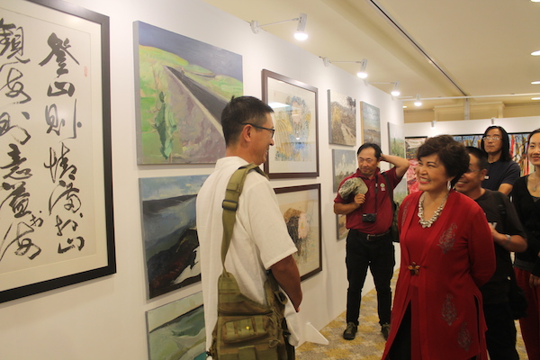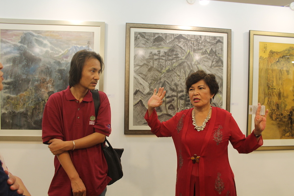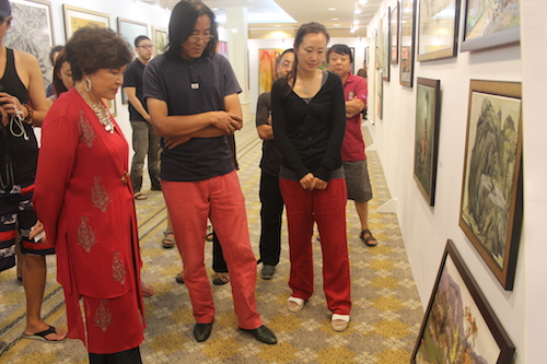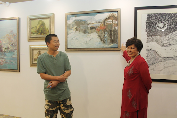 The clock had almost struck midnight. While the artists were still immersing in their joyous dances and chit-chats at the beach side, Tan Sri Dato' Sri Dr. Ng Yen Yen sashayed her way back to the exhibition hall to view the works of art again! This time around, she couldn't keep her gaze off the paintings by Chinese artists. After all, one of the highlights of Langkawi Art Biennale is to celebrate the year 2014 that has been designated by both the governments of Malaysia and China as “Friendship Year” to commemorate the 40th Anniversary of Diplomatic Relations! As Tan Sri observed each painting in detail, she discovered distinct artistic characters sculpted by the region’s geographical, social and cultural background that are exceptionally insightful. Being a vast explorer herself, Tan Sri engaged in an interesting exchange of stories in fluent Mandarin with some of the artists, who are also Professors from China's universities.