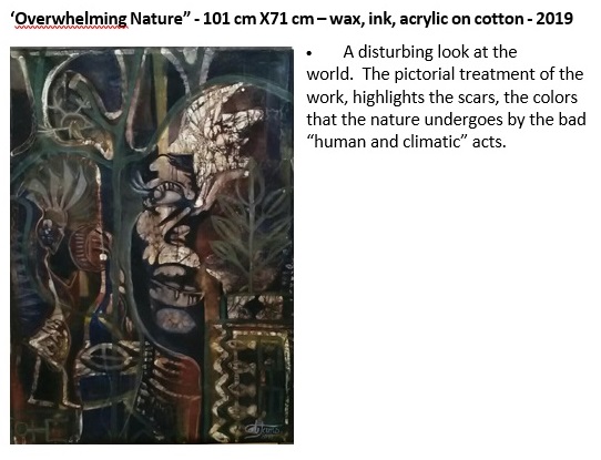She sails between epochs and civilizations. She represents in her creations ‘the absence of the present’ which is underlined by existing multi-ethnic symbols or from her imagination as well as figurative or abstract forms.