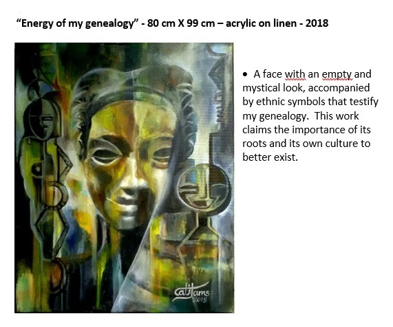Natural colors often used in dusty way testify a lived, the time, the earth, the universe. Each motif is an echo of a civilization. Her artistic expression stems from the practice of a ritual that connects the artist to the invisible world, physical, heaven and earth.